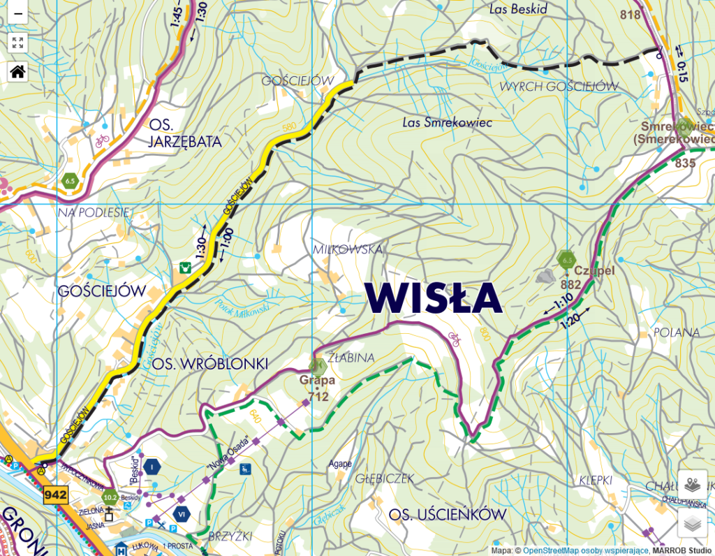Z Wisły Centrum jedziemy około 4 km w stronę Wisły Malinki lub Czarnego (droga na Szczyrk). 500m za restauracją „Polonia”, naprzeciw przystanku autobusowego Nowa Osada I skręcamy w lewo i przez most dojeżdżamy do dolnej stacji ośrodka, gdzie znajduje się bezpłatny parking. Można również dojechać komunikacją publiczną (Wispol).